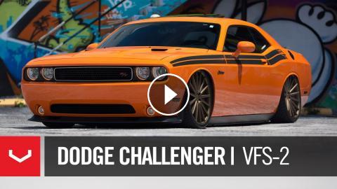 It is always refreshing to see a car in a rare color, in this case, an orange Dodge Challenger matched with our 22" Satin Bronze VFS-2 flow form technology wheels. You can catch this Dodge in the streets of South Florida looking right at home in the land of the Miami Hurricanes and some of the finest orange juice around! Bagged on Accuair Air Management and with custom LED color changing headlight halo's this big coupe simply draws a crowd wherever it goes. Our VFS-2 wheels here measure 22x9 front and 22x10.5 rear and tuck perfectly when the car is at its lowest setting while also offering more performance when the car is raised. Enjoy this latest video featuring a very unique color combination!