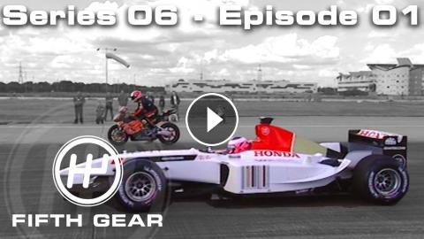 In Series 6 Episode 1 of Fifth Gear (Air Date 11th October 2004) It's the ultimate race, the F1 vs Super Bike vs Power Boat! Jason checks out the BMW 1 series and Vicki shows you why the Ford Capri is one of the best cars to own!